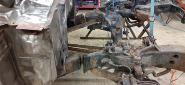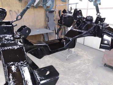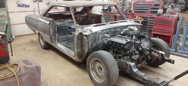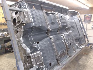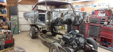 This classic was running and driving and looked like a nice car from a distance. But closer inspection revealed many areas that had rust bubbles under the paint. The owner decided to go all in with a complete restoration with significant upgrades. The engine is a 5.4 L DOHC from a 10 Mustang GT500 with an upgraded VMP supercharger and Holley fuel injection. The front frame was replace with a portion from a 99 Crown Victoria as it has better brakes, steering and also provides more room for the upgraded power plant. Significant rust repairs were performed including all new floor pans from firewall to tail panel followed up by final bodywork and paint.